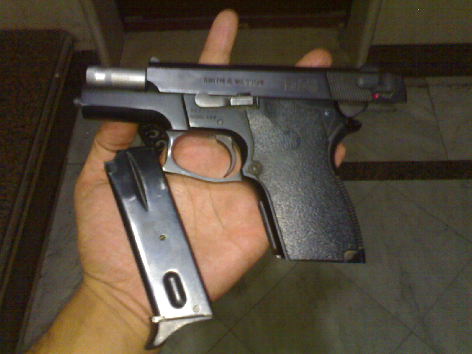 انا عندي مسدس حي مرخص ماركة سميث اند ويسون 9 مم موديل 469 للبيع بكامل مشتملاته ادوات التنظيف الأصليه والكتالوج وخزنة اضافيه بيضرب فردي والي يعني الخزنة كلها بضغطة واحده على الزناد