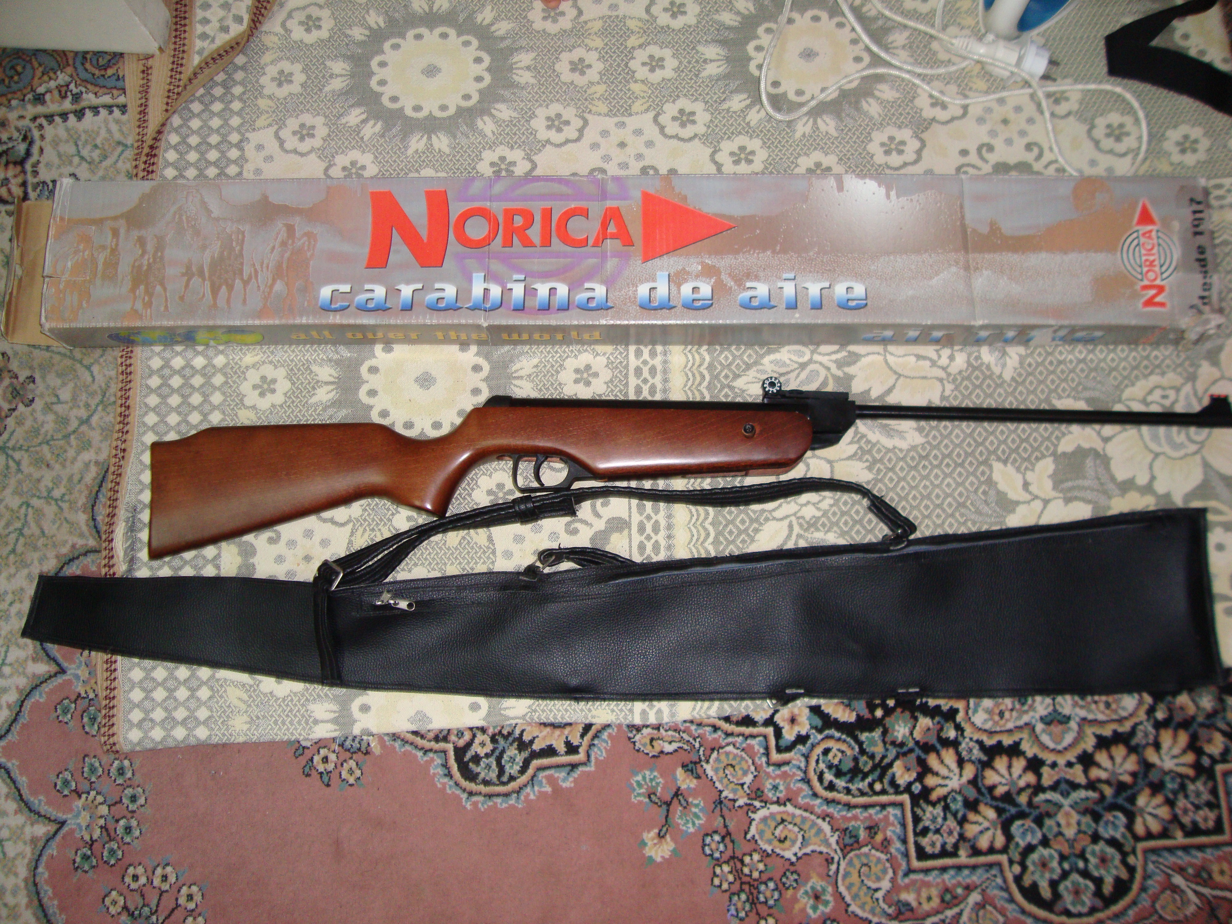 بندقية نوريكا سبورت - نمرة 2 - سرعتها 160 م/ث ومش مقاسة ده من الكتالوج والطاقة 8.7 جول - الوزن 2.6 كيلو جرام (اكبر ميزة فيها) - الطول الكلي 1035 مم يعني 1متر و3.5 سم بالتمام والكمال - طول الماسورة 454 مم - بندقية دقيقة جدا بتجمع معايا من 15 متر اوبن سيت وهيا اصلا بندقية رماية بس ده مش يمنع انها صيادة - إصدار جديد - نشينكات فسفورية الامامي أحمر والخلفي أخضر - نشيكاه خلفي قابل للتعديل - امكانية تركيب سكوب - امان اوتوماتيك عند التعمير - مكملتش علبة رش جامو ماتش