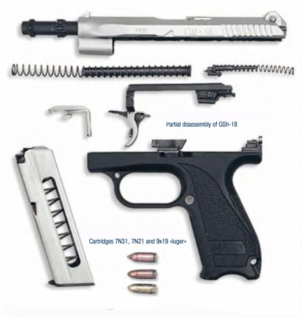 مواصفات عيار ........................9mm خرطوشة................................ لوغر «» 9x19 ، و7N31 7N21 الوزن خراطيش ث س /..................... 0.59 كغم طول ................................................18 3.5 م طول الماسورة .................................. 103 ملم سرعة الرصاصة في نطاق 10 أمتار................................... 535-570 م / ثانية المعدل الفعلي لاطلاق النار........................... 15-20 طلقة / دقيقة سعة المخزن ........................... 18 طلقة Specifications Caliber ................................................9m m Cartridge ..........................................9x19 «luger», 7N31 and 7N21 Weight w/o cartridges .....................0.59 kg Length ................................................18 3.5 m Length of barrel..................................103 mm Bullet muzzle velocity at 10 m range ...................................535-570 m/sec Effective rate of fire...........................15-20 rds/min Magazine capacity .........................18 rds