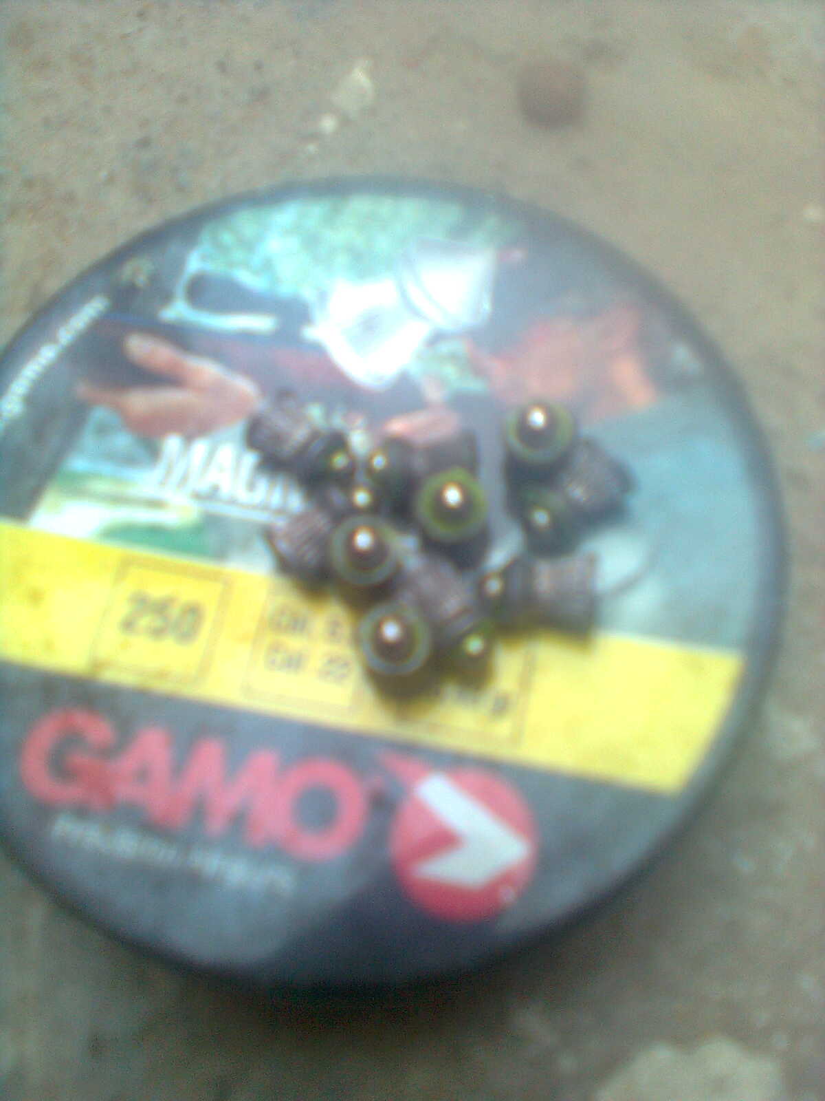 تم تركيب بليه فى الرشاية الماتش من قدام بواسطة بنطة 4مم وتم ثقب رأس الرشاية ولكن ليس للوصول الى فتحة الهواء وتم تركيب بلية نمرة واحد وتم لصقها بمادة pc7وهيه مادة قويه تشبه الارال دايت وهى لها تأثير قوى جدآ على الطريدة والكلاب وتم تثبيت بلية اخرى من الخلف بقطر 9 من عشرة من المليميتر واليكم الصور