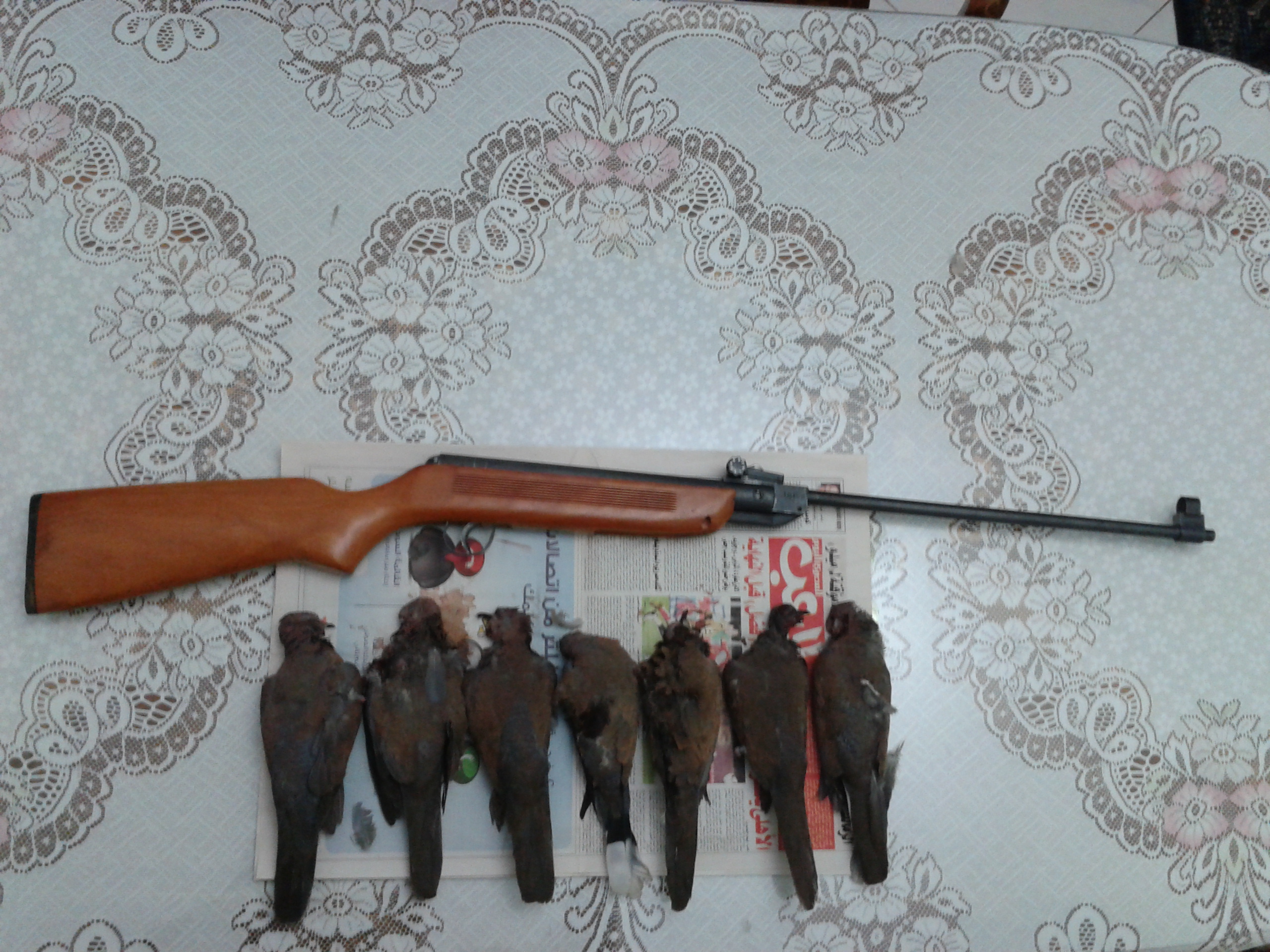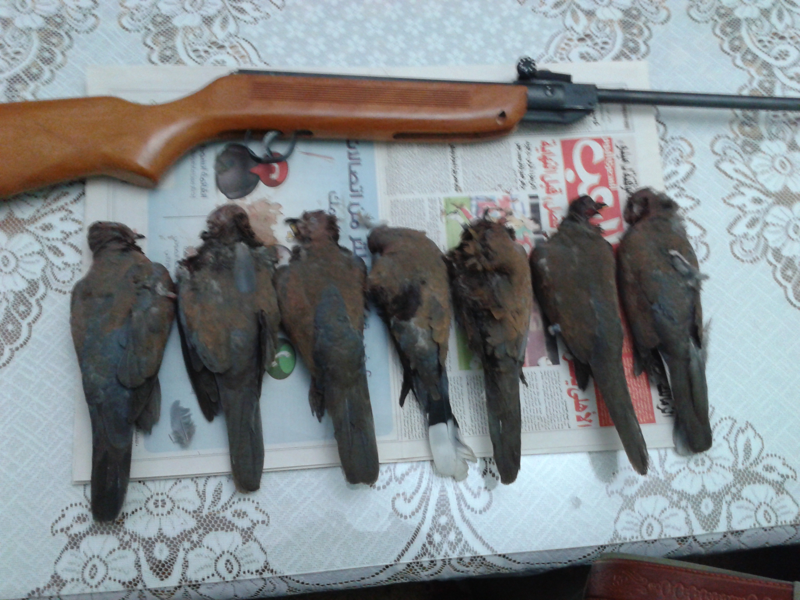 انا نزلت الساعة 6 الصبح كدة فى الشارع بتاعى عشان المنطقة اللى انا ساكن فيها فيها يمام كتير بس خلاص بعد اللى عملته دة طفش والنشان مكنش مظبوط بس الحمد الله ربنا رزقنى ب 7 فر يمام وغير حوالى 10 اللى ريشت واللى اتصابت اصابه خفيفة كدة عشان النشان كان بيشوح جامد اوى:mad: