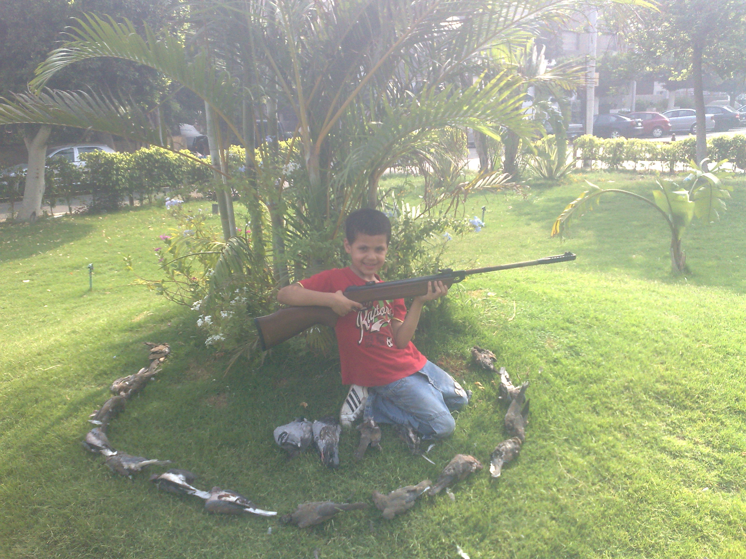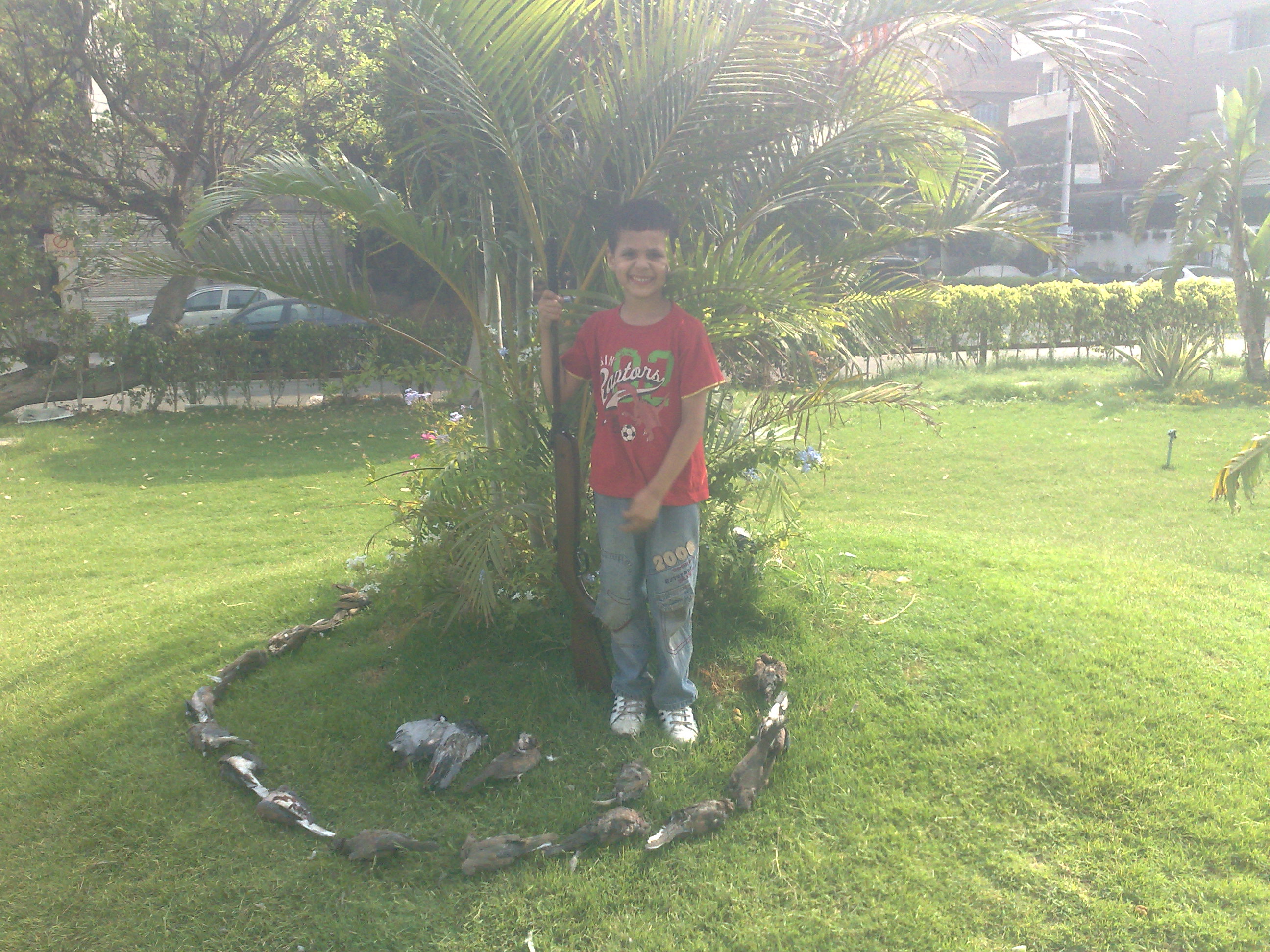 وضربت غراب فوق سطوح عمارة عالية وجت في جناحه ووقع واتعلق من رجليه فوق شجرة واطية