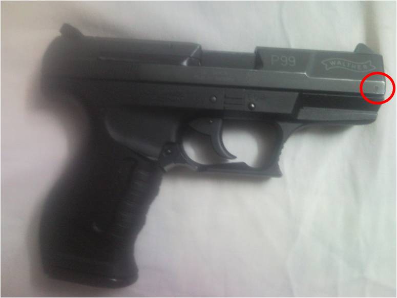 العلامه الى عليها دايره حمره ده ختم المصنع للمسدس الاصلى مش التقليد