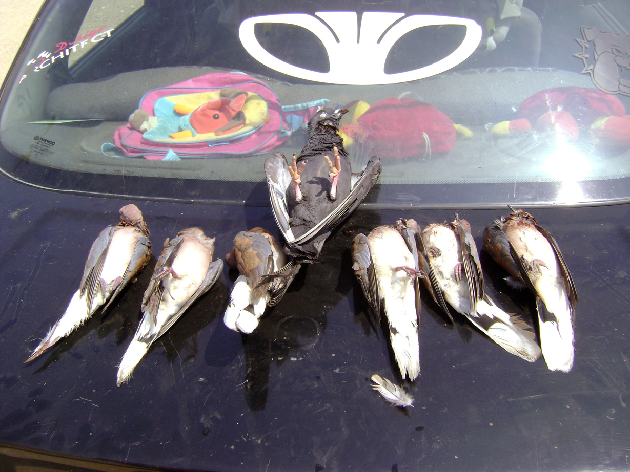 وكانت هذه الحصيلة من فضل الله ( فرد حمام برى و 6 يمامات وغرابين ) و الجميل أن كل الصيد كان بينزل مقفوووول حتى الغربان.