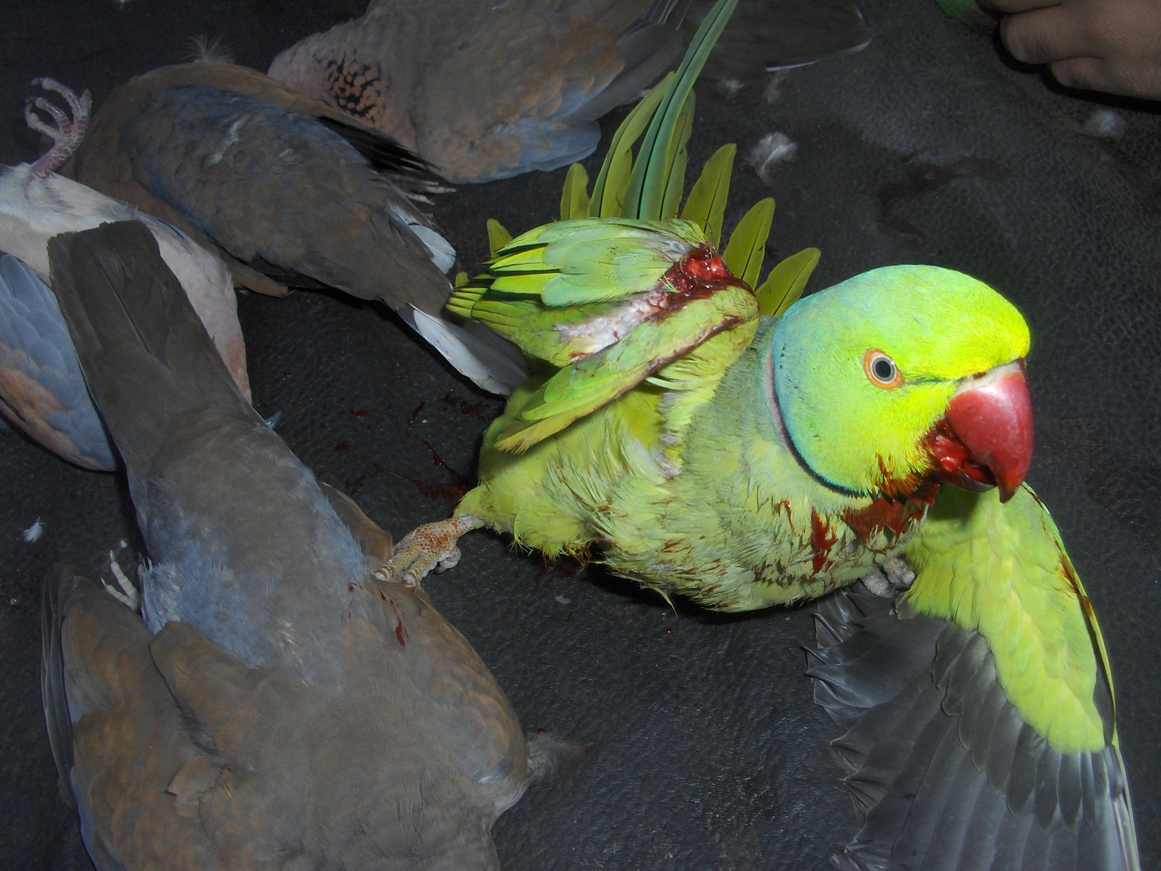 وكانت فى القناطر انا صادفت هناك غراب البحر او البط الغطاس مره واحده بس للاسف ماعرفناش نجيبه بس الاجمل كانت ببغنات الدره المطوقه احنا حاولنا نضربها فى الجناح قدر المستطاع علشان تعيش بس للاسف مااستحملتش ودى الصور |