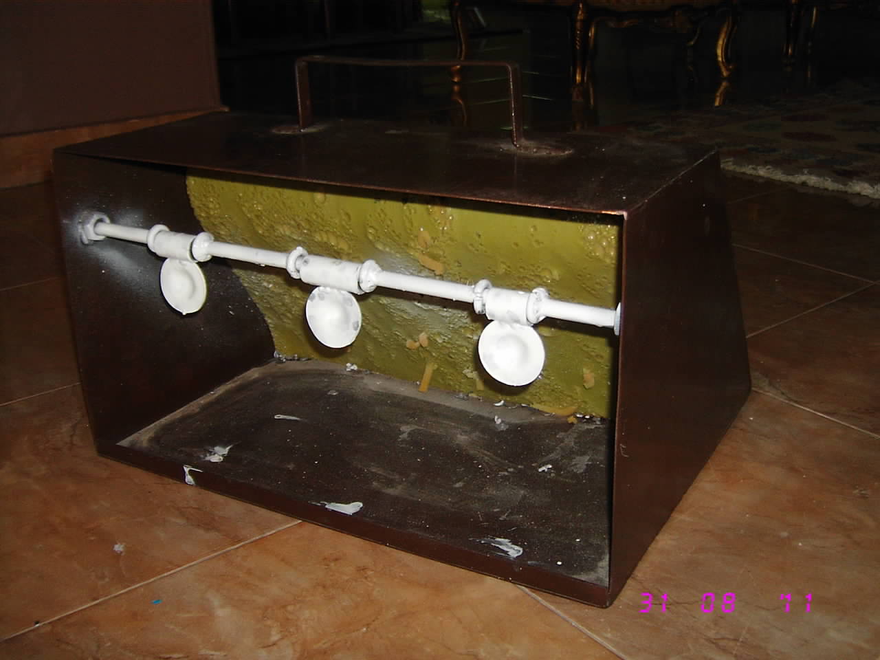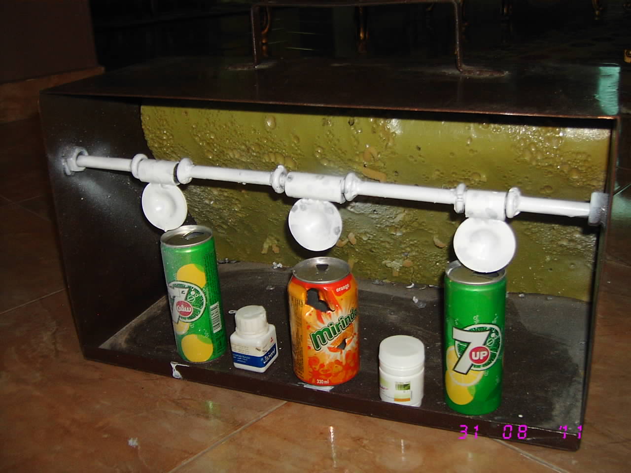 اخوانى الاعزاء كل عام وانتم بخير هذا هدف للرمايه للتدريب وضبط البنادق وللمتعه والمرح الهدف عباره عن صندوق من الحديد به 3 دوائر حديديه صلبه تدور على محور ثابت وعند الاصابه المحققه تدور الدائره ويمكن لثلاثه افراد الضرب فى وقت واحد ويمكن وضع علب داخلها وفى الداخل قطعه خشب وعليها اسفنج واخيرا تحياتى