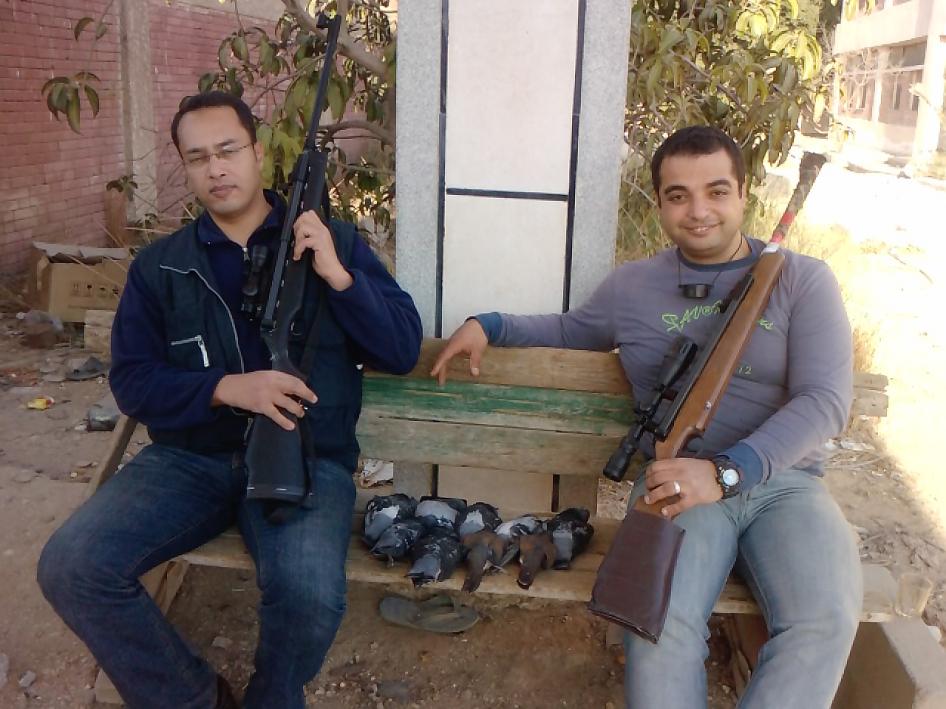 السلام عليكم.... أحلى واجدع صيادين فى مصر كلها أنهرده طلعت أنا مع م وئام للمكان السرى بتاعنا ووصلنا حوالى الساعه 9.30 وبدانا فى وضع خطه الصيد وترتيب وتجهيز أماكن لينا(كل واحد ملتزم بحدود منطقته) وجهزنا البنادق وتأكدنا من السكوبات وعملنا خطه الكماشه وبردوا من داخل الغرف والممرات السريه قعدنا حوالى ساعه مفيش ولا فرد جه لكن فجاه نزل الحمام وكانه سيل من السماء ومبقناش عارفين ننشن على ايه ولا ايه من كثرته المهم التزمنا الهدوء لمده دقيقه واستخدمنا أشارات اليدين والصفافير والموبايلات فى تضبيط الضرب والحمد لله ربنا رزق ب5 فرادى فى حوالى 10 دقائق وطبعا انت عارفين صوت الديانا والبام 22 عامل أذاى خاصه فى مكان شبه مغلق والرنه فى الحوائط المهم قعدنا نصطاد والغفير بتاع المكان يلم وفى الاخر وجدنا الغفير دابح الحمام ومنضفه وفى حله على النار كمان يعنى طازه بطازه على رايه طبعا هو مش فاهم موضوع الصور والتصوير لكن الحمد لله صورنا اللى لحقناه لكن الحق والحق يقال صيد الحمام البرى من امتع ما يكون وخاصه لومعاك 2 سفاحين الديانا والبام 22 والله والله الحمام بيتفجر قبل مابينزل وأسيبكم مع الصور ويا رب تعجبكم.......