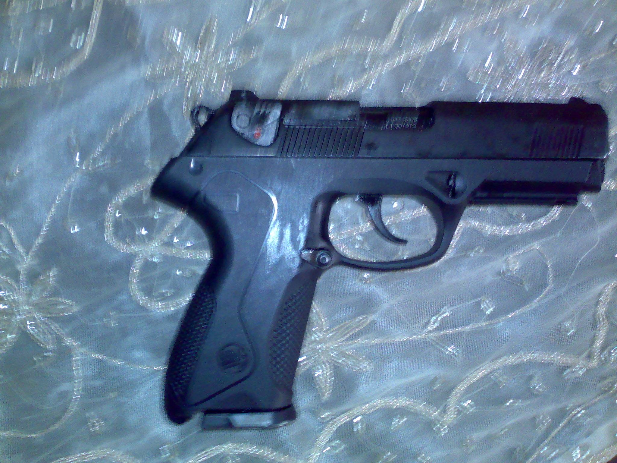 للبيع مسدس بي فور صوت خزنه 14 طلقه كالجديد مع علبته ومعه جراب جنب و10 طلقات صوت الماني وهو قوي جدا وتقليد البرتا x4