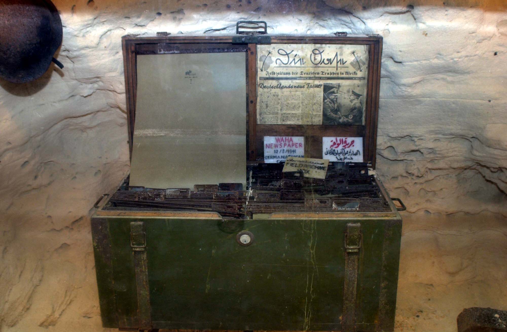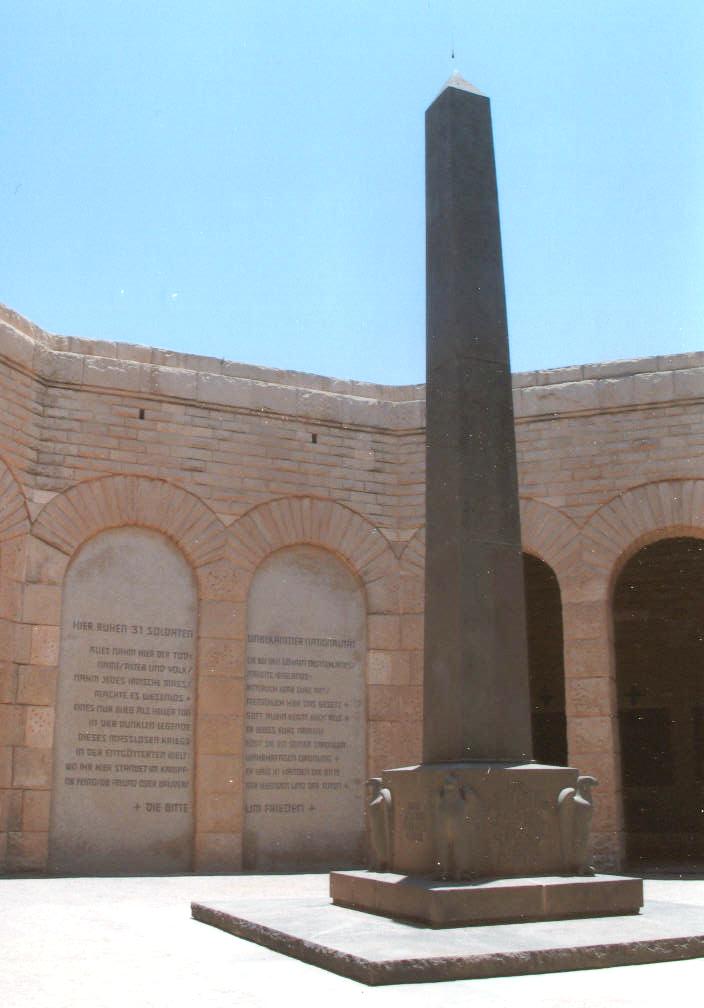 صباح الخير على احلى صيادين وغاويين فى مصر كلها دا الجزىء الثانى وفيه صور المقبره الايطاليه وتضم2500 جندى بحريه ايطالى تم انزالهم من البحر بالخطاء داخل الخطوط الانجليزيه وابيدو عن اخرهم ولزلك دى المقبره الوحيده التى مكانها بعيدا والباقى فى مكان واحد والمجموعه الاخرى من الصور للكهف الخاص بالقياده الالمانيه ويسمى كهف روميل ومعروض بهمقتنياته الخاصه البالطو والساعه اما المسدس والاوسمه فقد سحبت منه قبل اعدامه -اشترك هو ومجموعه منظمه من العسكريين فى محاوله لاغتيال هتلر وكادت تنجح وقام باعدامهم جميعا حتى من كان يلقى عليهم السلام وكان هزا قبل انتحار هتلر ب8 شهور ويارب تعجبكم