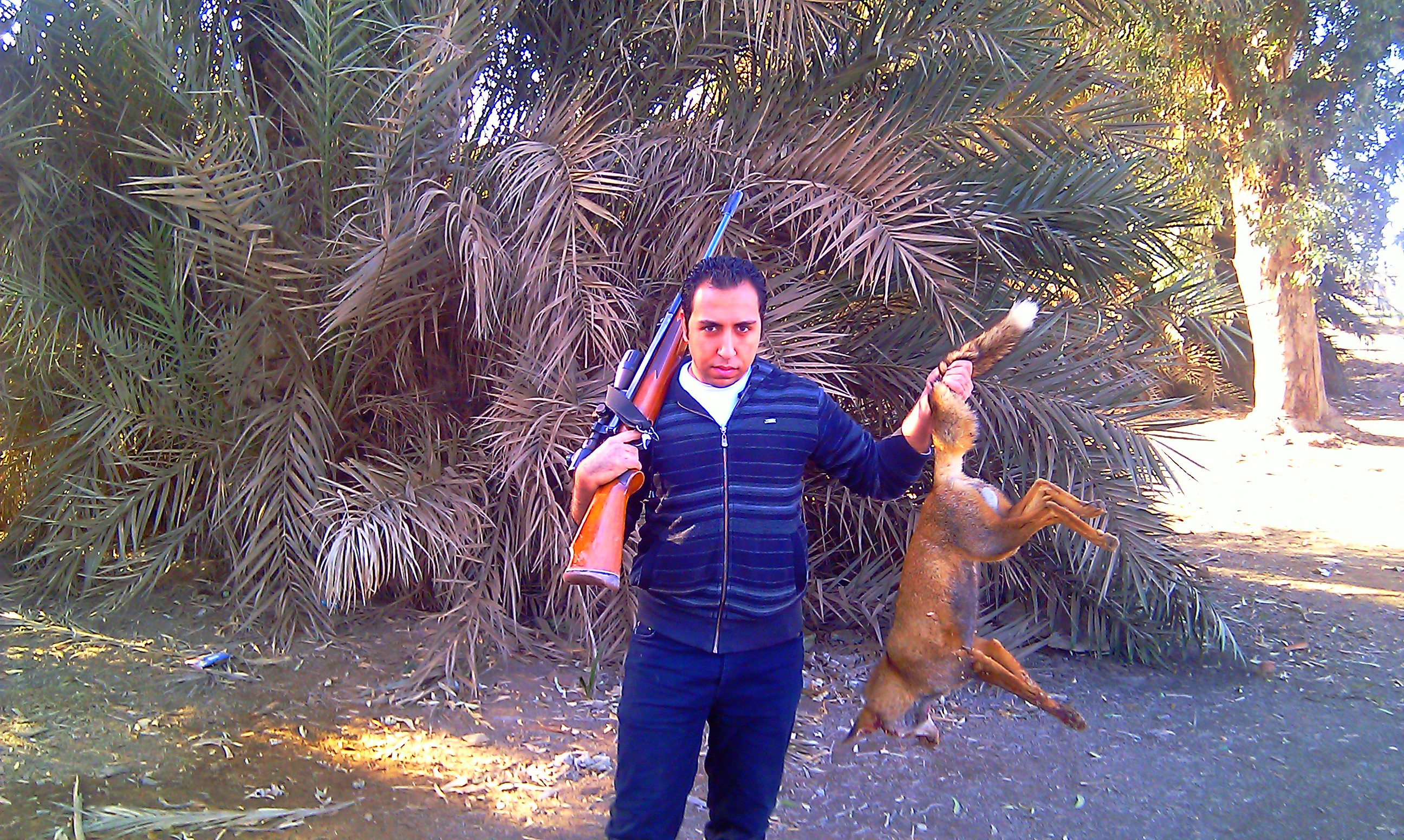 المزارع دى وواحد منهم كان بياكل حاجه من الارض ومش واخد باله منى خالص انا كنت بعيد عنه حوالى 40 متر ركزت كويس جدا ووضعت الصليبه تحت ودنه بالظبط وضربت الطلقه وهى من نوع promagnum