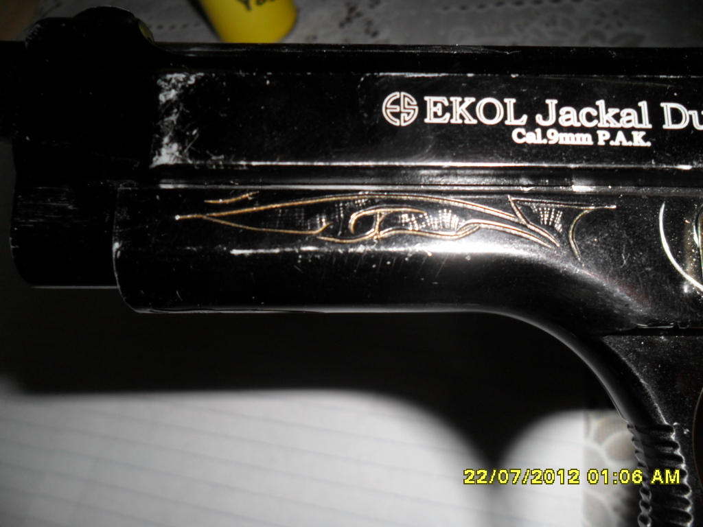 عرض اليوم مسدس ايكول جاكال ديول شكل تحفة :المواصفات :-------- اللون أسود المقبض بنى من المصدر الزراير دهبى من المصدر منقوش حفر على الماسورة والاجزاء والجوانب نقش رائع المسدس مفتوح يعنى يضرب بلى وصوت المسدس مستعمل لسة مغير الشاكوش لأن القديم اتهلك من الضرب معاه طبة صوت مازنجر + طبة بلى مازنجر نمرة 2 معاه علبة معاه كاس صواريخ معاه فرشتين تنظيف معاه 34 طلقة ببلى تركى فضى زجاجة زيت تنظيف تركى مليانة المسدس سنجل اكشن فيه خدش بسيط انا بشغله مع الطلق الدهبى التركى 9 ملى p.a ممتاز بيرد أجزاء ومفيش حشر طلقات الطلق الفضى التركى بينطر فارغ أول طلقة ويحشر باقى الطلقات معايا مش عارف ليه مع انه كان شغال فيه قبل كده والفرق فى السعر تافه بين الطلقتين والتانى أنظف سبب البيع عدم الحاجة إليه أنا كنت شاريه 2400 جنيه+ مع التعديل ( الطبب250 جنيه + الشاكوش 150 جنيه )2800 جنيه من غير الطلق وعلبة الزيت وسعرها 25 جنيه والطلق سعره 102 جنيه ل34 طلقة المجموع 2927 جنيه سعر البيع 2600 جنيه و للبيع كمان فى علبة طلق بلى تركى فضى نمرة 2 ( 50 طلقة) سعرها 150 جنيه كده العرض انتهى وبينت فيه كل مواصفات المسدس |