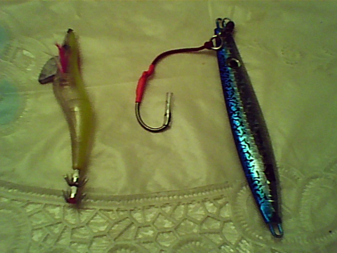 1- الJig او المعلقة نفسها هي قطعة معدنية شبه السمكة .. ثقيلة نسبيا من 90 الي 400 جرام .. بها سن كبير موازي لها.. يراعي ان يكون السن ذو فم مفتوح حتي لا تشبك بجسم المعلقة ... أفضل ماركة هي Williamson ... لا يفضل وضع سن ثلاثي في أخرها حيث أثبت فشله لكثرة توعيره، كما ان السمكة في حالة الjigging تهاجم رأس الjig لمحاولة قتلها بسرعة وهناك متوافر بالاسواق جيجايات ليلية فوسفوريةلا عليك الا ولن تضعها قى ضوء اى مصباح وتقوم بانزالها على الفور وانتظر النتائج الباهرة باذن اله .