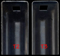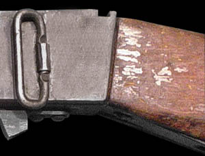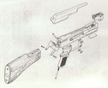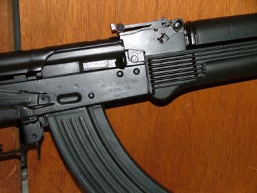 المدخلين الظاهرين فوق مكان تثبيت المخزن وذلك لمنعه من الاهتزاز يبدوان أصغر في (اي كيه ام) مم هو عليه في AK-47.