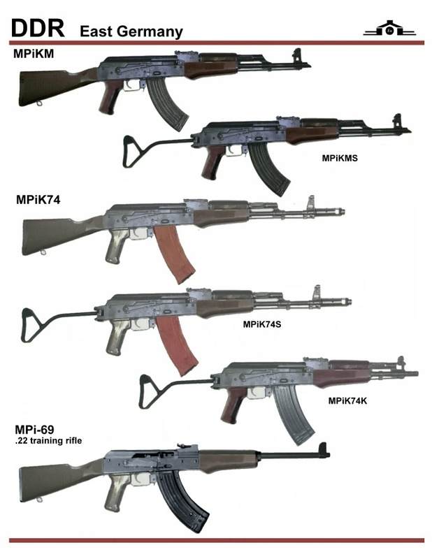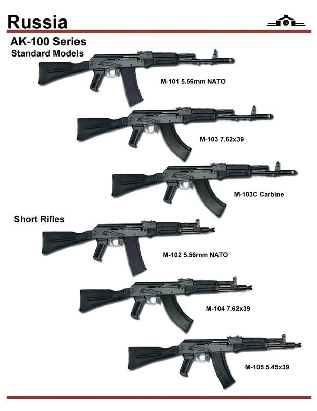 AKS, AKM 6P1, AKMS, AK-74, AK-101, AK-102, AK-103, AK-104, AK-105, AK-107, AK-108.